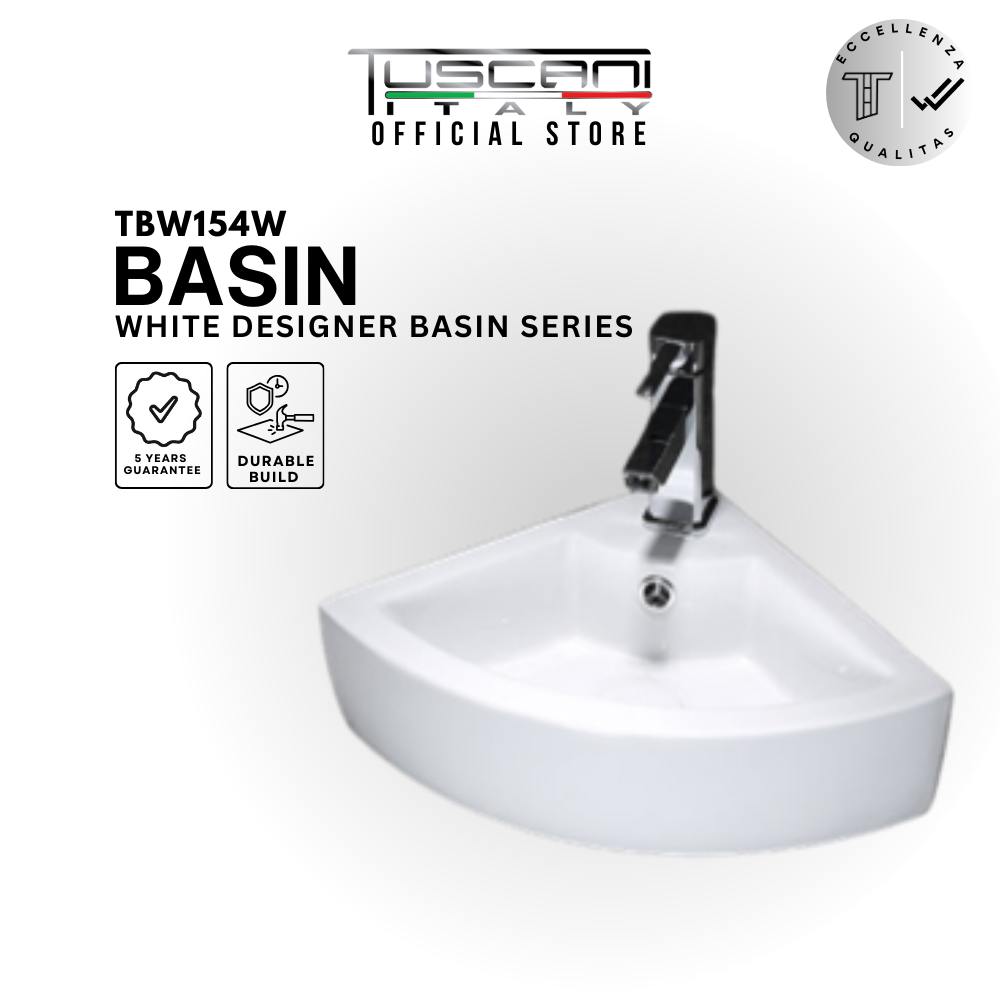 The Tuscani Compact Corner Basin is designed to fit perfectly into tight spaces, making it ideal for HDBs, apartments, powder rooms, and compact commercial restrooms.