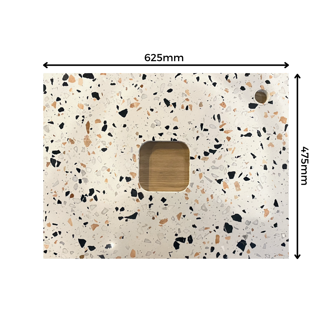 Upgrade your bathroom with the elegant and durable White Terrazzo Solid Surface, designed specifically for 600mm VC60 Vanity Cabinets.